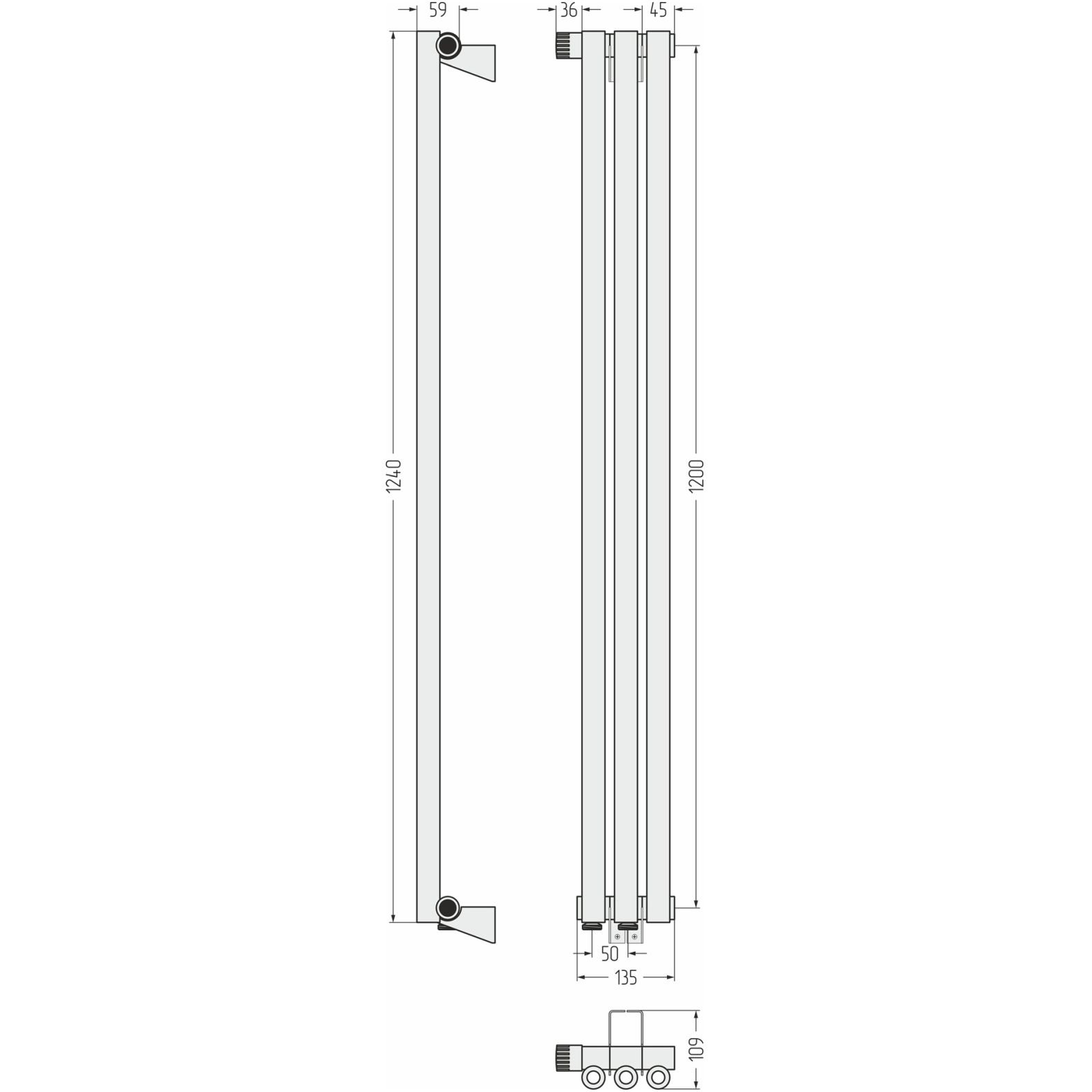Радиатор однорядный коаксиальный Сунержа (Sunerga) Эстет-0 EU50 левый 1200х135 мм 3 секции 12-0320-1203