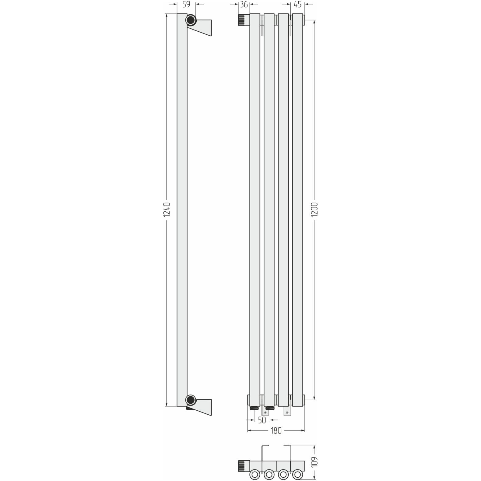 Радиатор однорядный коаксиальный Сунержа (Sunerga) Эстет-0 EU50 левый 1200х180 мм 4 секции 03-0320-1204