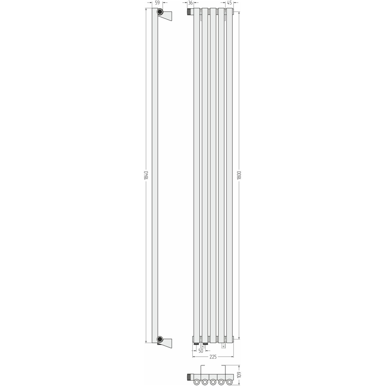 Радиатор однорядный коаксиальный Сунержа (Sunerga) Эстет-0 EU50 левый 1800х225 мм 5 секций 12-0320-1805