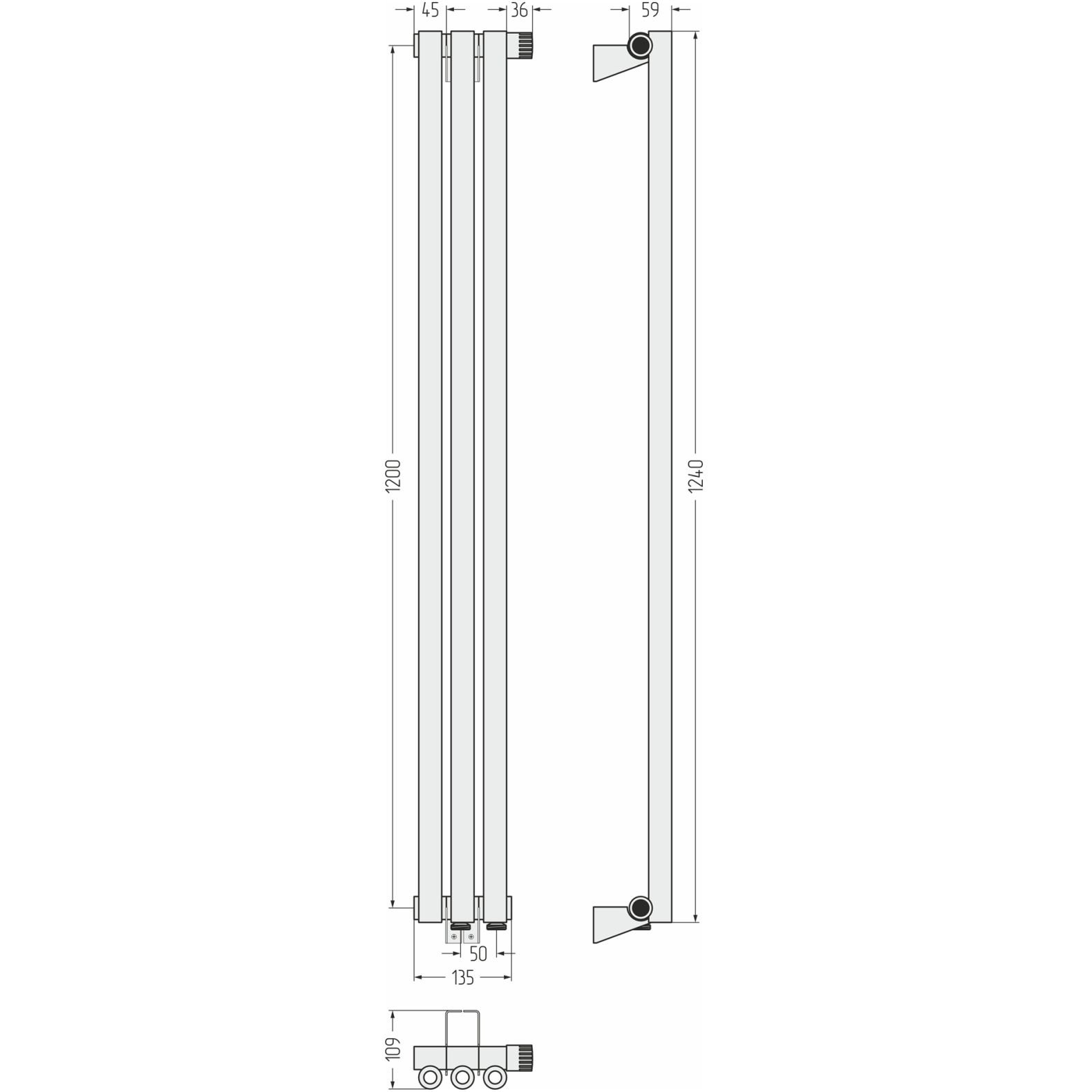 Радиатор однорядный коаксиальный Сунержа (Sunerga) Эстет-0 EU50 правый 1200х135 мм 3 секции 30-0321-1203
