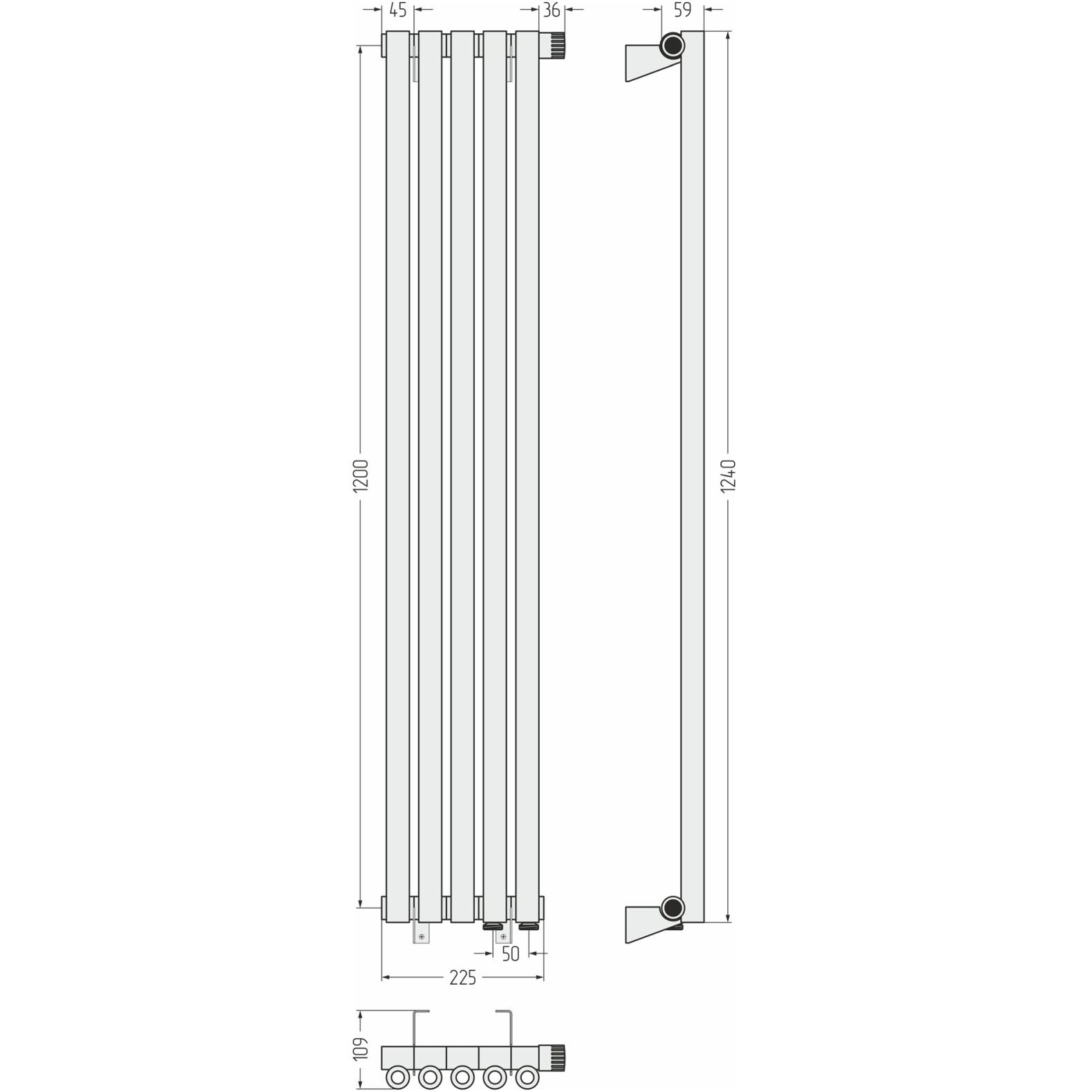 Радиатор однорядный коаксиальный Сунержа (Sunerga) Эстет-0 EU50 правый 1200х225 мм 5 секций 31-0321-1205