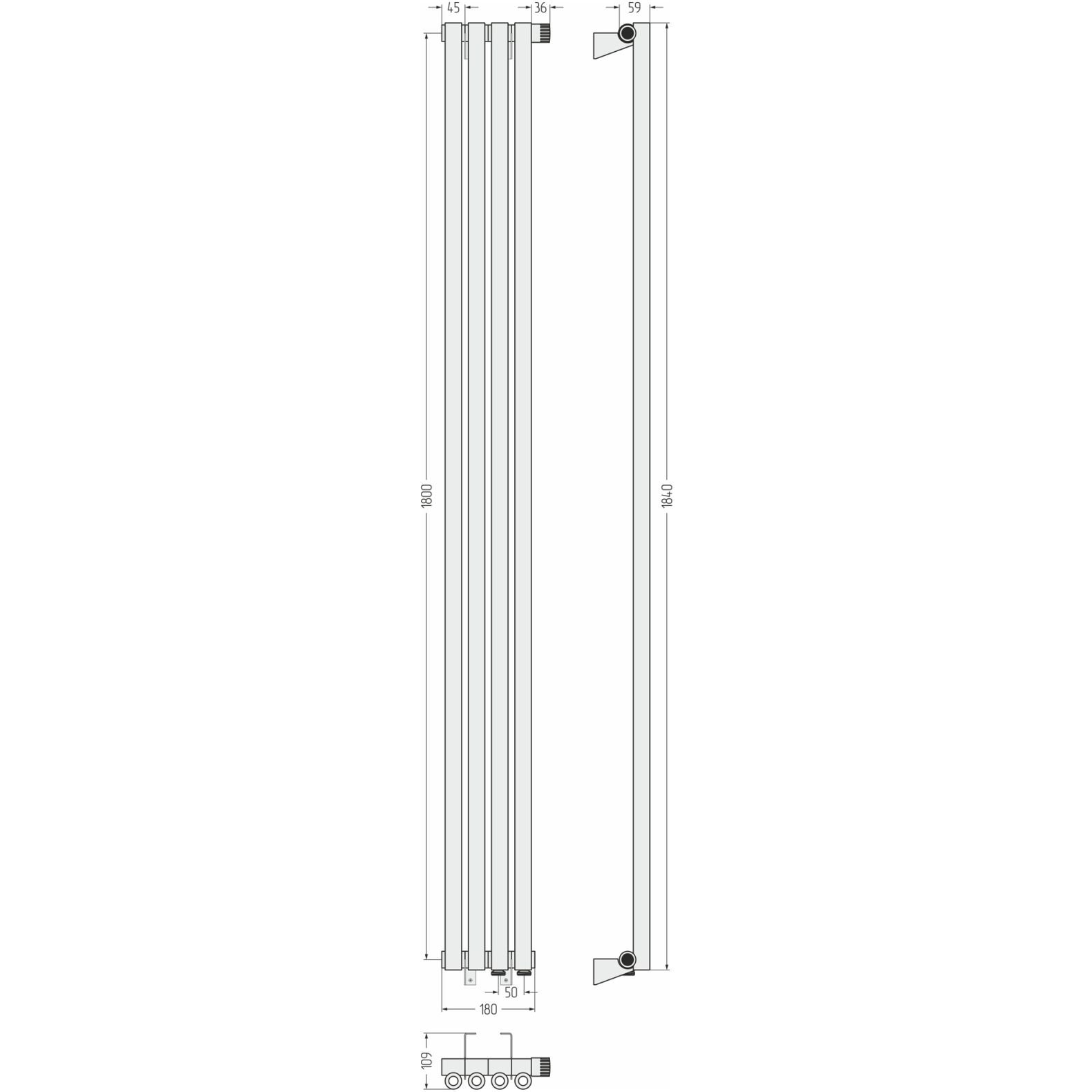 Радиатор однорядный коаксиальный Сунержа (Sunerga) Эстет-0 EU50 правый 1800х180 мм 4 секции 31-0321-1804