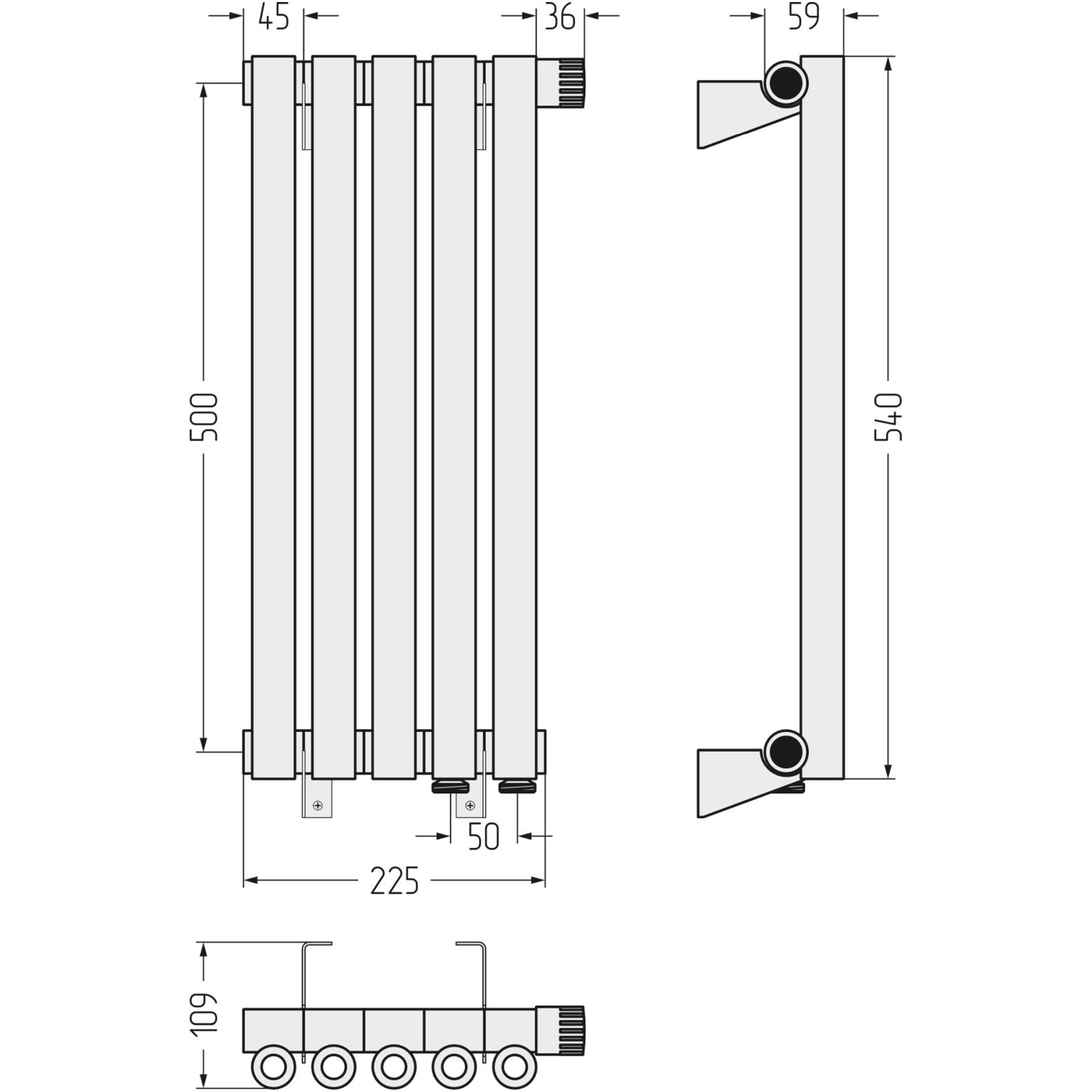 Радиатор однорядный коаксиальный Сунержа (Sunerga) Эстет-0 EU50 правый 500х225 мм 5 секций 31-0321-5005