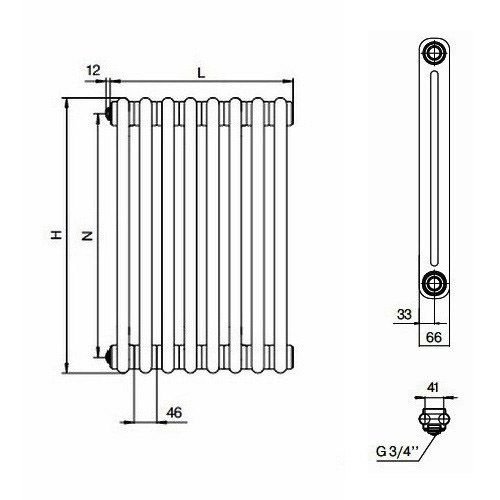 Радиатор трубчатый Rifar (Рифар) Tubog 3057/12 боковое подключение белый RAL9016