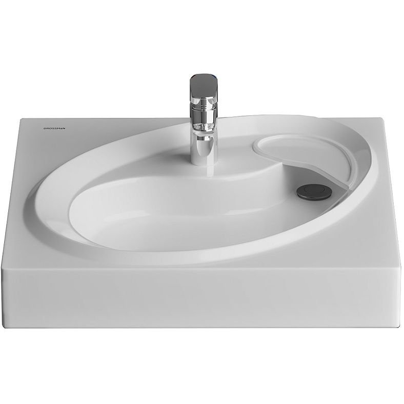 Раковина GROSSMAN ALVARO 60 на стиральную машину 600х600х110 мм. Подвесная раковина Grossman Alvaro 60 1606001 для установки над стиральной машиной - украсит пространство вашей ванной комнаты и позволит использовать его с максимальной пользой. Раковина Grossman Alvaro 60 1606001 на стиральную машину Белая, красота формы в сочетании с удобством использования в малых помещениях. Бортики раковины и сливная накладка справа позволяют удобно разместить мыльницу и другие предметы. Подходит для стиральной машины глубиной до 50 см.