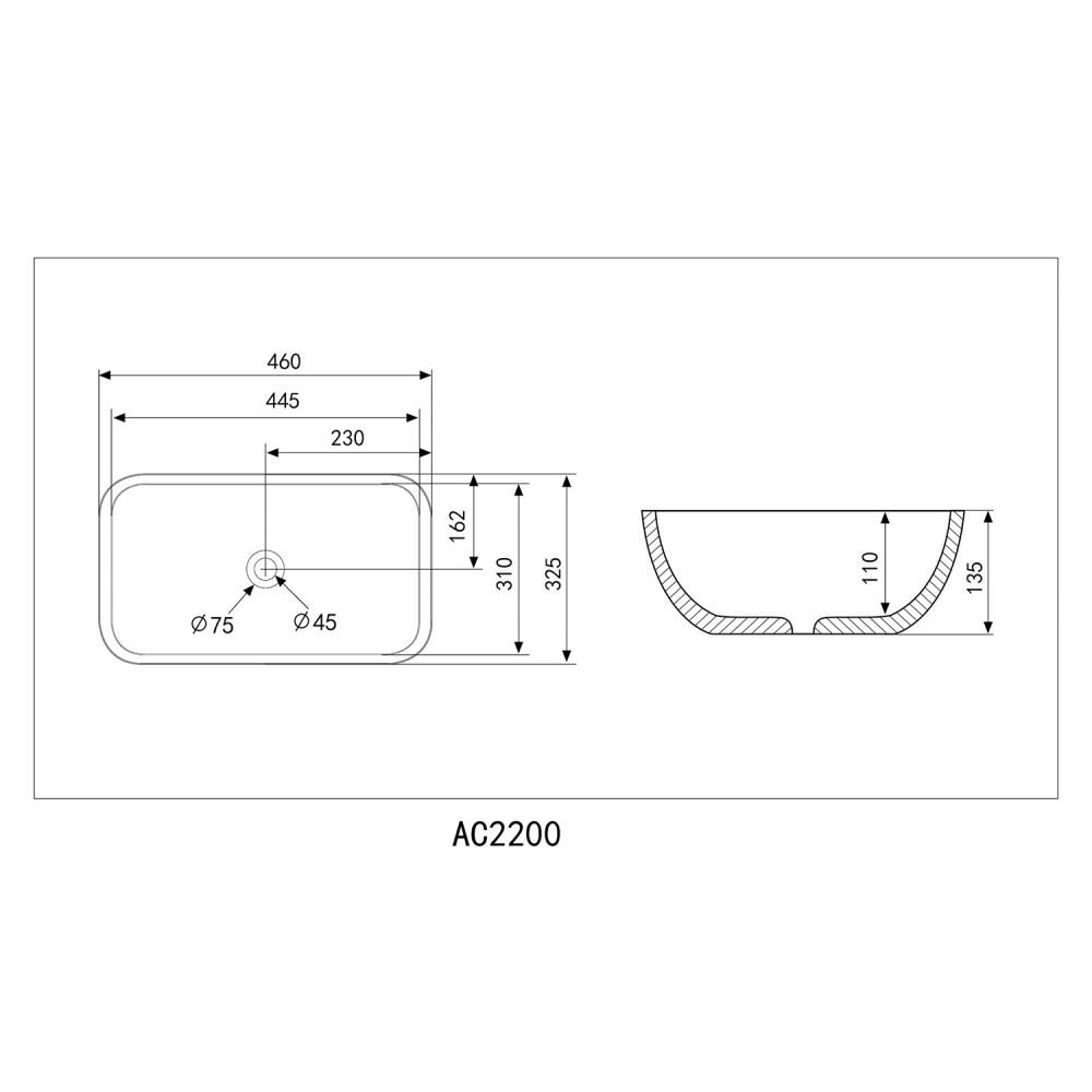 Раковина ABBER Rechteck AC2200MBG темно-зеленая матовая 460х325х135 мм фаянс, накладная, прямоугольная