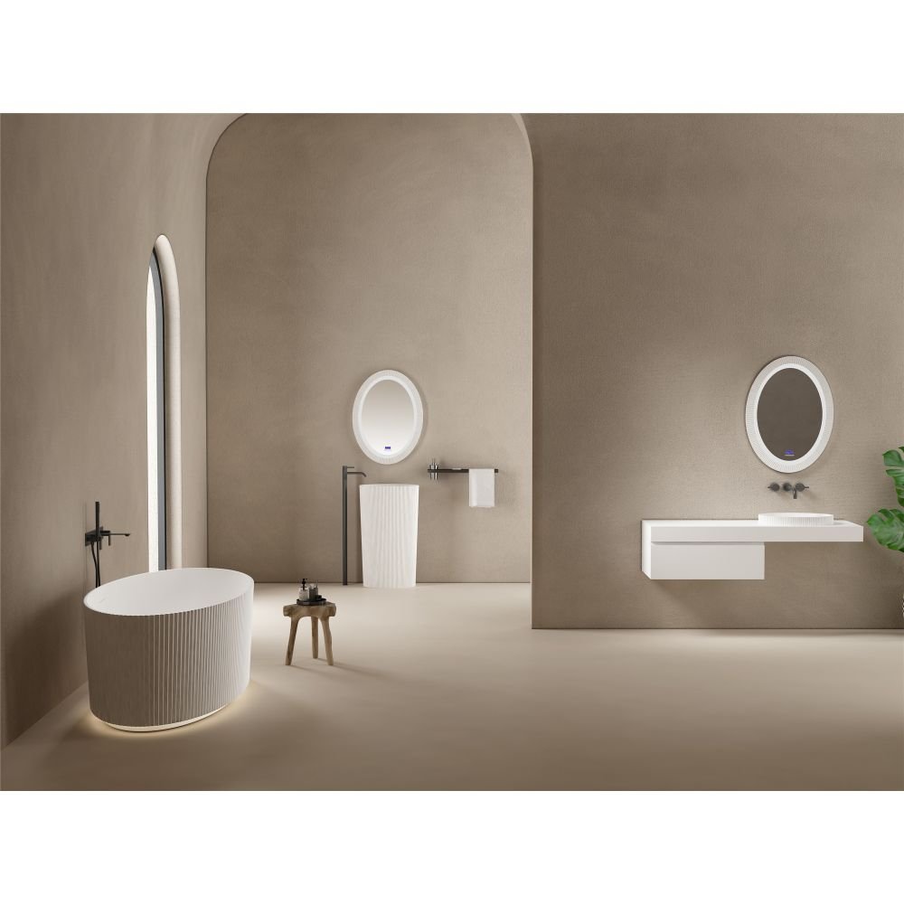 Раковина ABBER Stein AS2603 белая матовая 500х320х60 мм искусственный камень, накладная, овальная, накладка на слив из искусственного камня