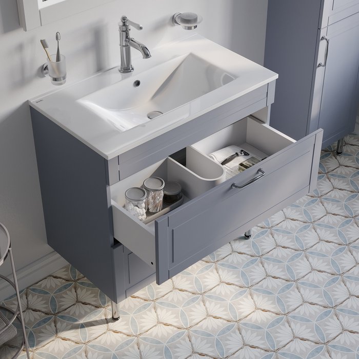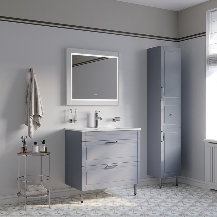 Напольная тумба Oxford изысканного светло-серого цвета – модное сочетание классического стиля и стиля ретро. Она органично впишется в интерьер благодаря элегантному фрезерованному фасаду и узнаваемому дизайну. В комплекте плоский эргономичный умывальник. Два просторных выдвижных ящика закрываются плавно и бесшумно благодаря высококачественным скрытым направляющим с доводчиками немецкого производства. Хромированные ножки и ручки дополняют цвет фасада и сочетаются с дизайном одноименных смесителей IDDIS и смесителей в стиле ретро. Несложно подобрать все необходимое для создания гармоничного интерьера. Поверхность фасадов бархатистая, приятная на ощупь. Это ощущение создает полуматовая полимерная эмаль с эффектом soft touch. Фурнитура рассчитана на 30 000 открываний – это более 10 лет исправной работы. Гарантия на мебель IDDIS – 3 года. (с) Авторский текст, август 2023 г.