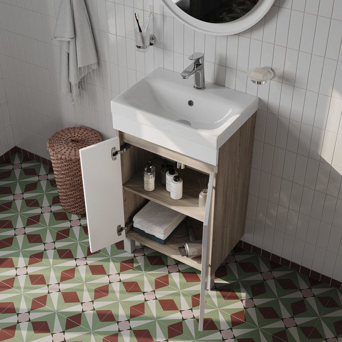 Тумба с умывальником Iddis (Иддис) Zodiac напольная с дверцами 50 см белая/под дерево ZOD5ADFi95K подходит ум. 3505000i28