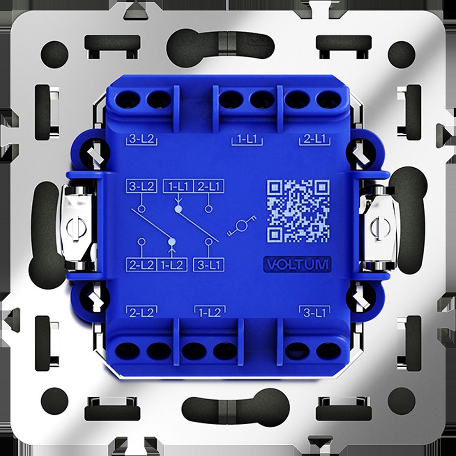 Переключатели удобны в больших помещениях и длинных коридорах для управления освещением из нескольких мест. В ассортименте представлены два вида устройств: проходные переключатели (две точки) и перекрестные переключатели (три и более точек). Корпус. Внешне переключатели похожи на классические выключатели. Компания Voltum придерживается общего стиля для удобства дизайнеров. Корпус выполнен из негорючего, прочного и долговечного поликарбоната. В линейке присутствуют модели с подсветкой. Конструктивные особенности. Все переключатели Voltum способны коммутировать нагрузку до 10 А. Для эффективной работы сети требуется заранее разработать схему электроснабжения с учетом установки переключателей в нескольких точках.
