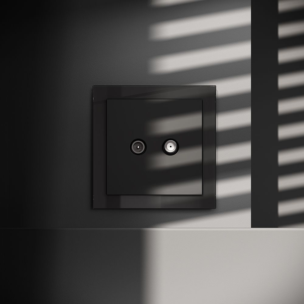 Розетка телевизионная встраиваемая Voltum (Вольтум) S70 оконечная TV+SAT, (черный матовый) VLS060408