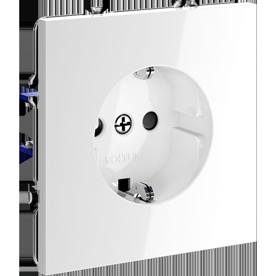 Розетка встраиваемая Voltum (Вольтум) S70 с заземлением и защитными шторками, 16А, (белый глянцевый) VLS040201
