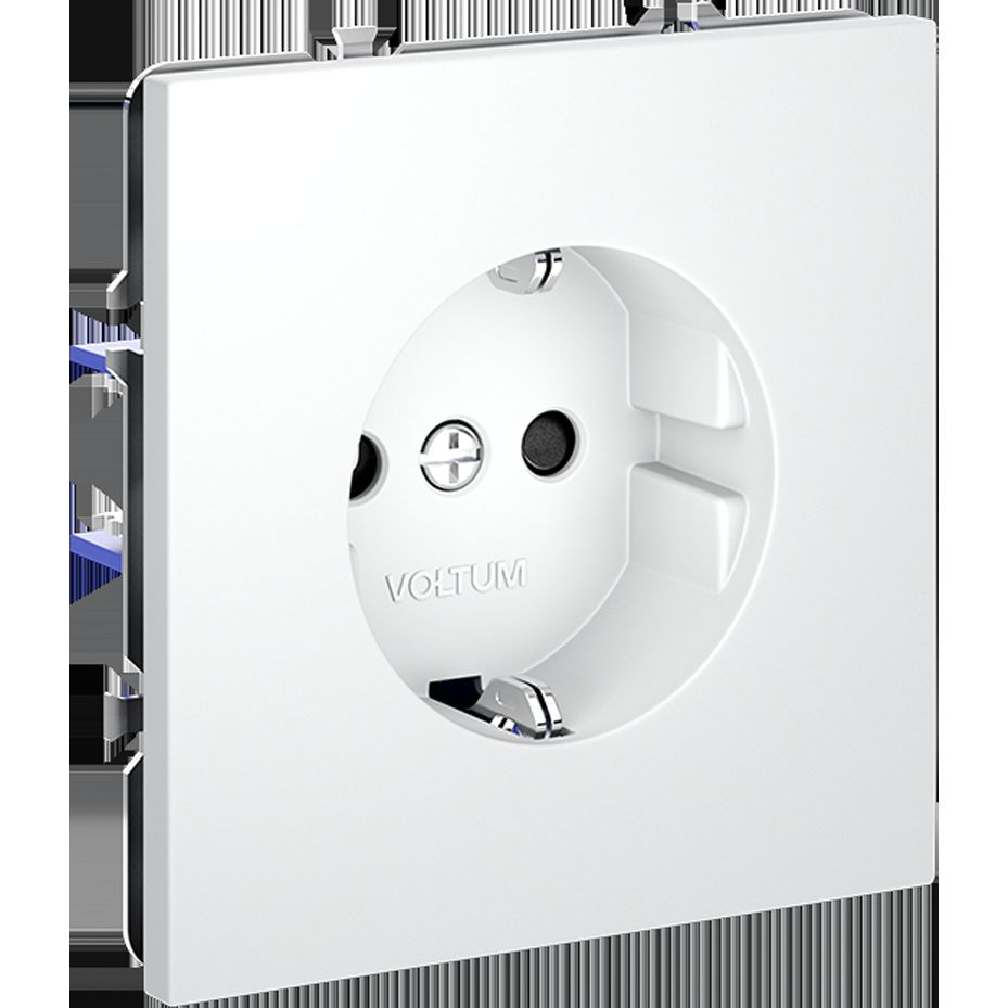 Розетка встраиваемая Voltum (Вольтум) S70 с заземлением и защитными шторками, 16А, (белый матовый) VLS040202