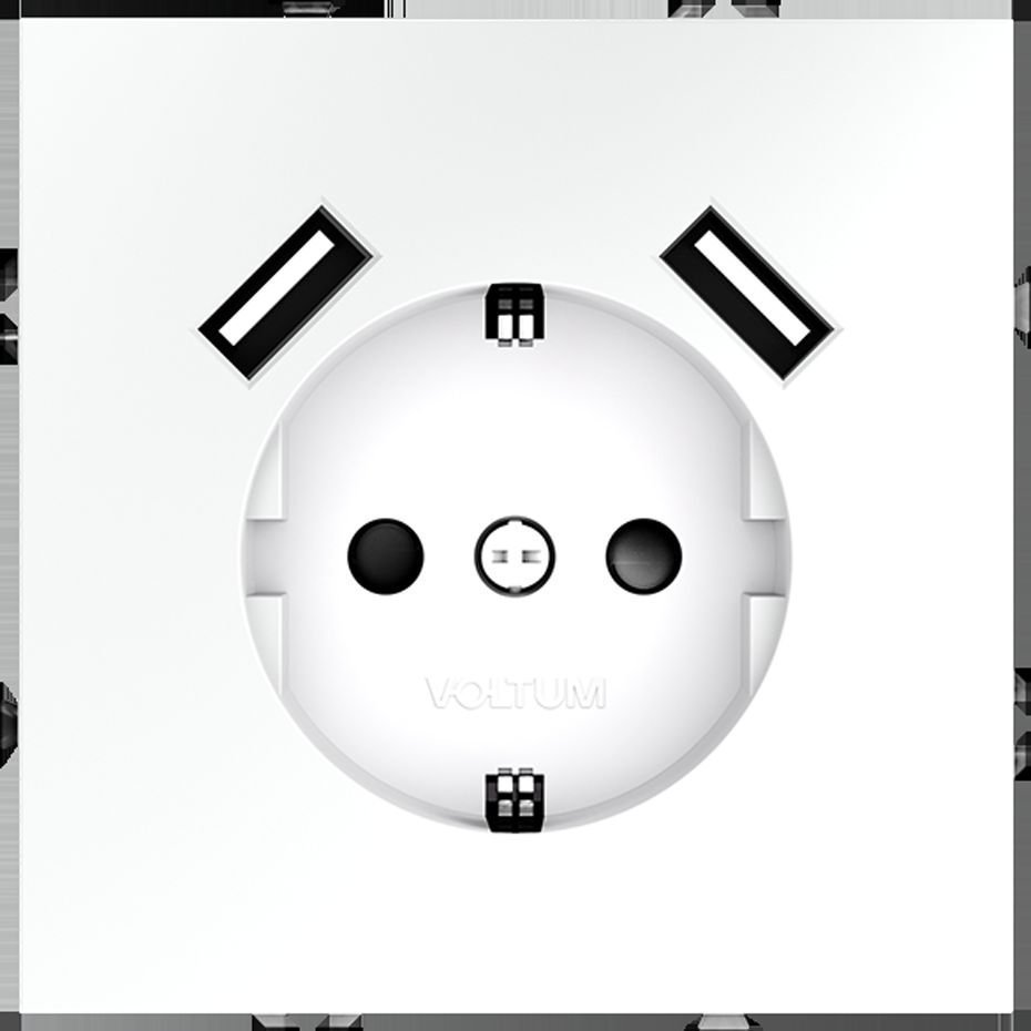 Розетка встраиваемая Voltum (Вольтум) S70 с заземлением и защитными шторками, 16А, с USB, A+A, (белый матовый) VLS040402