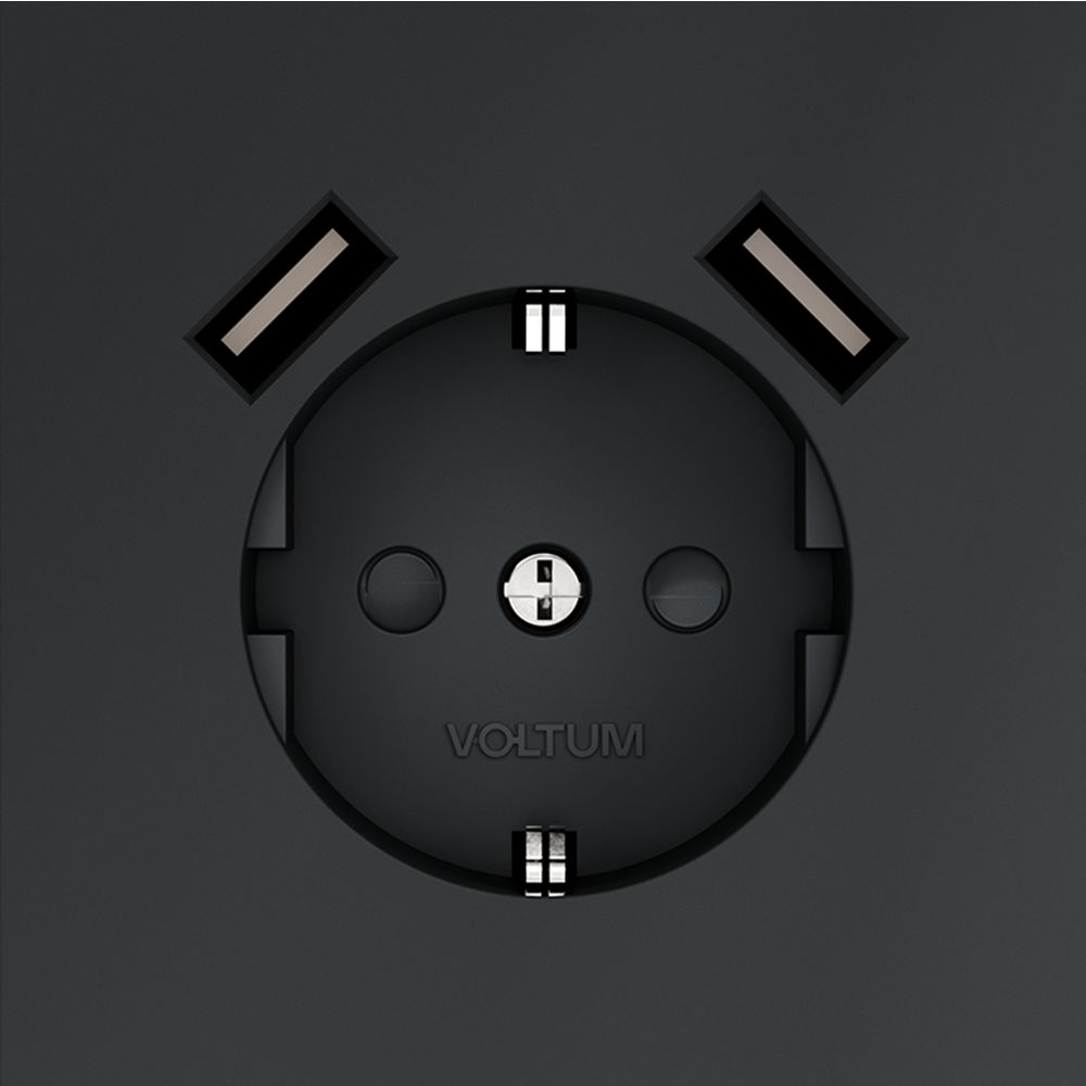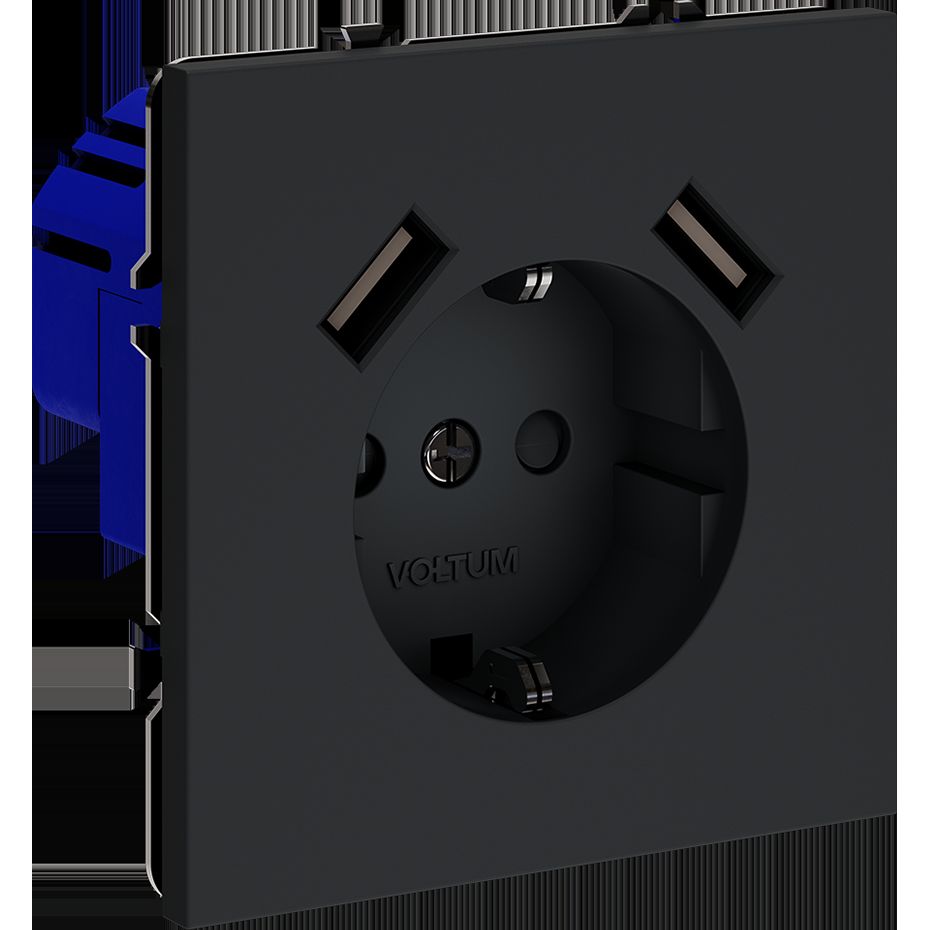 Розетка встраиваемая Voltum (Вольтум) S70 с заземлением и защитными шторками, 16А, с USB, A+A, (графит) VLS040407