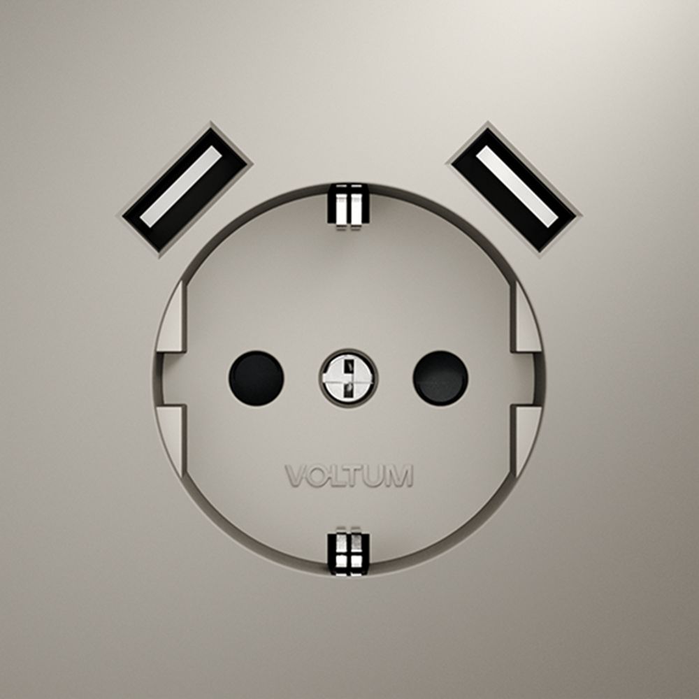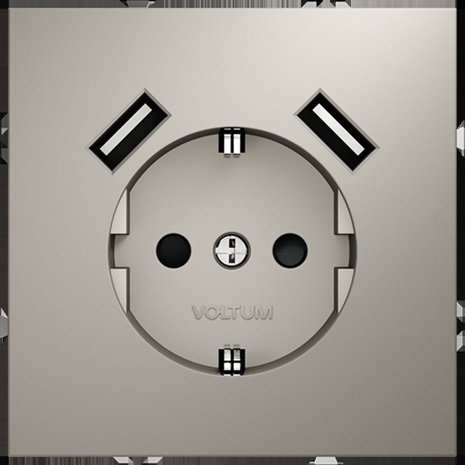 Розетка встраиваемая Voltum (Вольтум) S70 с заземлением и защитными шторками, 16А, с USB, A+A, (кашемир) VLS040403