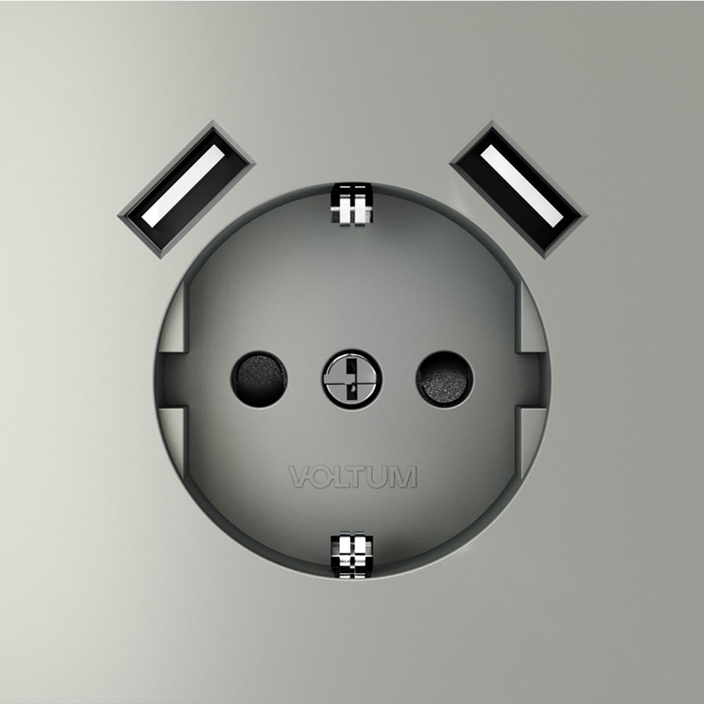 Розетка встраиваемая Voltum (Вольтум) S70 с заземлением и защитными шторками, 16А, с USB, A+A, (сталь) VLS040405