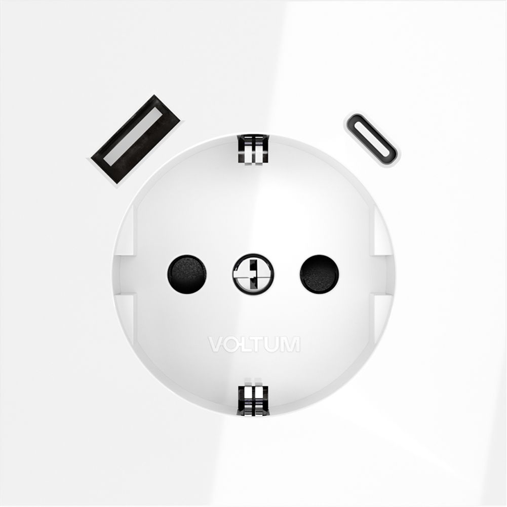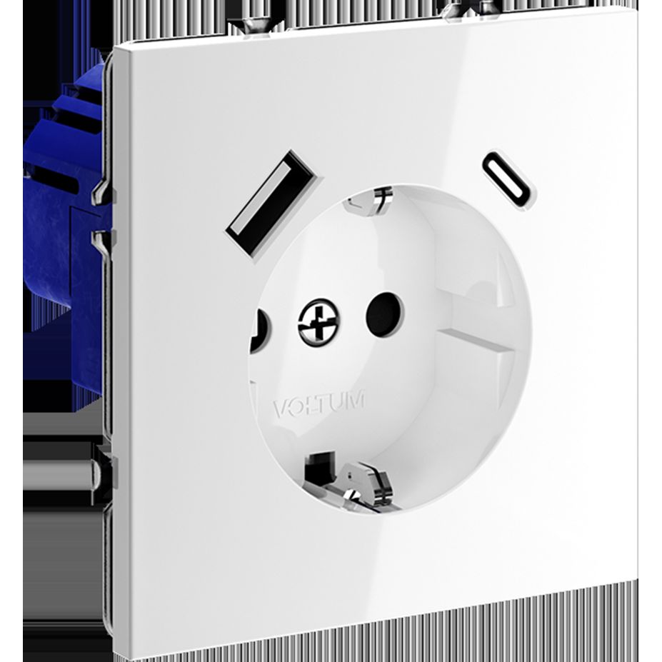 Розетка встраиваемая Voltum (Вольтум) S70 с заземлением и защитными шторками, 16А, с USB, A+С, (белый глянцевы VLS040501