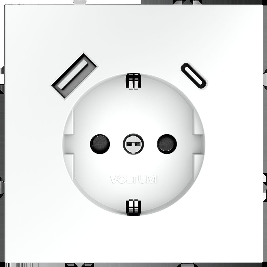 Розетка встраиваемая Voltum (Вольтум) S70 с заземлением и защитными шторками, 16А, с USB, A+С, (белый матовый) VLS040502