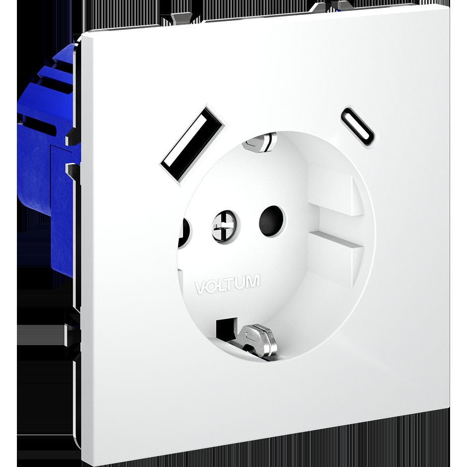 Доставка Розетка встраиваемая Voltum (Вольтум) S70 с заземлением и защитными шторками, 16А, с USB, A+С, (белый матовый) VLS040502 из Москва в районы и города ЮВАО, ЮЗАО, ЮАО, Новомосковский АО, Одинцово, Подольск, Щербинка, Троицк, Строительный рынок Славянский мир, 41-й км МКАД, бывшая Мельница, Красногорск, Домодедово, Тёплый стан, Коммунарка, Мосрентген, Видное, Мамыри, Краснознаменск