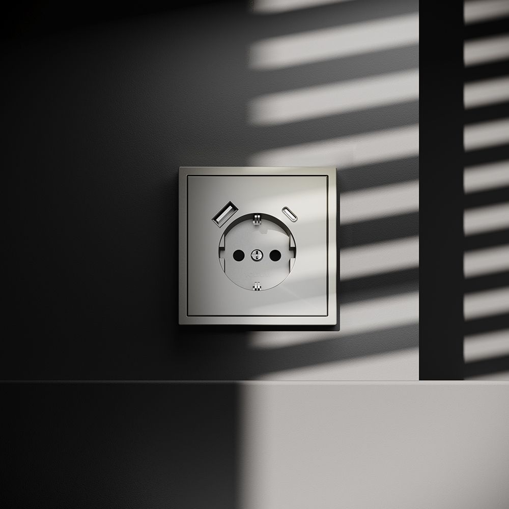 USB-розетки становятся все более распространенным не только в офисах, но и дома, так как значительно упрощают зарядку гаджетов. Их установка экономит место (массивные блоки питания больше не понадобятся), они органично смотрятся в технологичном интерьере. Корпус. Отличие от обычных розеток — наличие одного или нескольких разъемов типа USB-С или USB-A. Основной материал — негорючий поликарбонат. Конструктивные особенности. Мощность подключаемых приборов — до 20 Вт, сила тока — до 3,2 А. Этого достаточно для зарядки смартфонов, планшетов, ноутбуков, фотоаппаратов и других переносных устройств. USB типа C с технологией Quick Charge позволяет заряжать устройства в разы быстрее, чем обычные блоки питания. Разъем поддерживает одновременную зарядку нескольких гаджетов. Для монтажа USB-розетки рекомендован углубленный подрозетник.