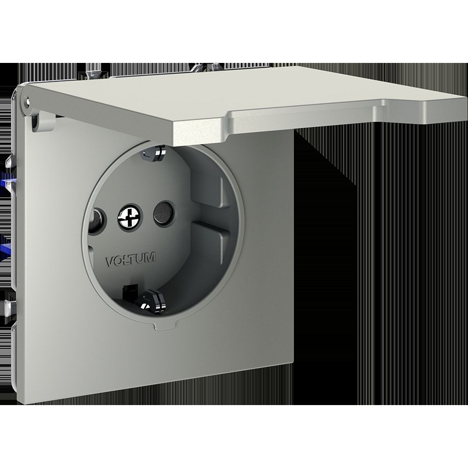 Розетка встраиваемая Voltum (Вольтум) S70 с заземлением, защитными шторками и крышкой 16А, (шелк) VLS040304