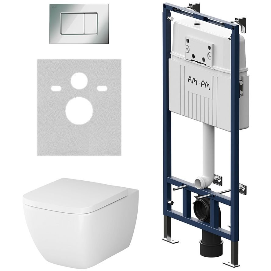 Инсталляция AM.PM (АМ.ПМ) MasterFit Gem глянцевый хром, подвесной унитаз FlashClean с сиденьем, синий, белый, IS100251.901701