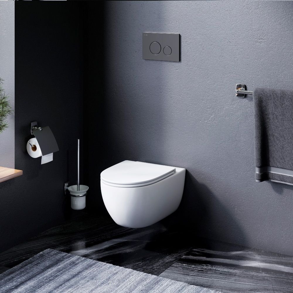 Инсталляция AM.PM (АМ.ПМ) с подвесным унитазом FlashClean, коллекция Awe, микролифт, в комплекте: сиденье, клавиша, материал: черный матовый, IS49038.111700