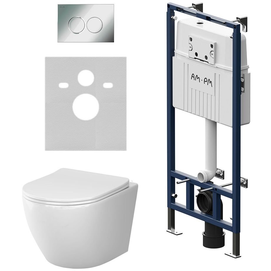 Инсталляция Am.Pm (Ам.Пм) с унитазом MasterFit Like глянцевый хром, с сиденьем, с подвесом, с клавишей, IS100151.801900