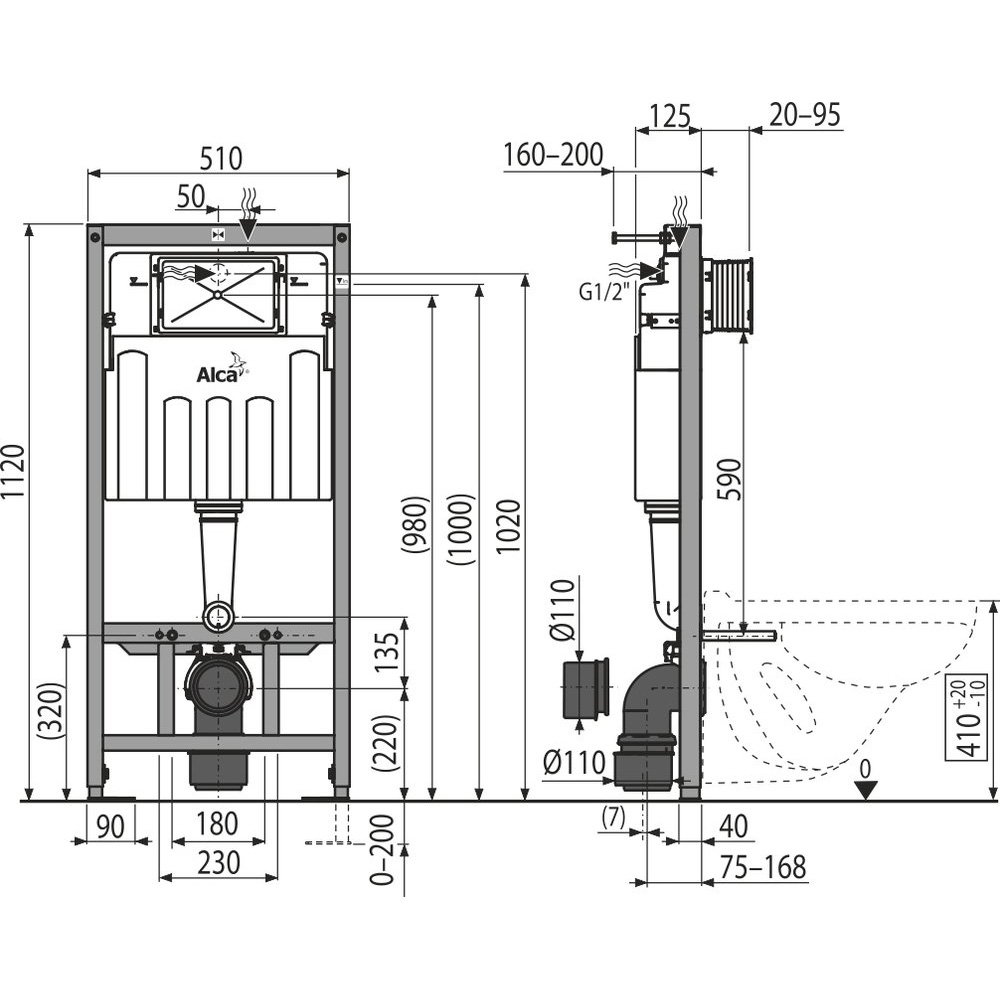 Для установки подвесного унитаза с расстоянием между точками крепления 180 или 230 мм подойдет система инсталляции AlcaPlast Sadromodul AM101/1120-001. Изделие выполнено в виде рамного модуля для монтажа к гипсокартонной конструкции. Выполненная из металла несущая конструкция обработана порошковой краской, которая обеспечивает длительный срок службы. При помощи выдвижных ножек можно отрегулировать высоту унитаза в диапазоне 0–200 мм. Установленная система закрывается гипсокартонным листом и не нуждается в дополнительных крепежных элементах.