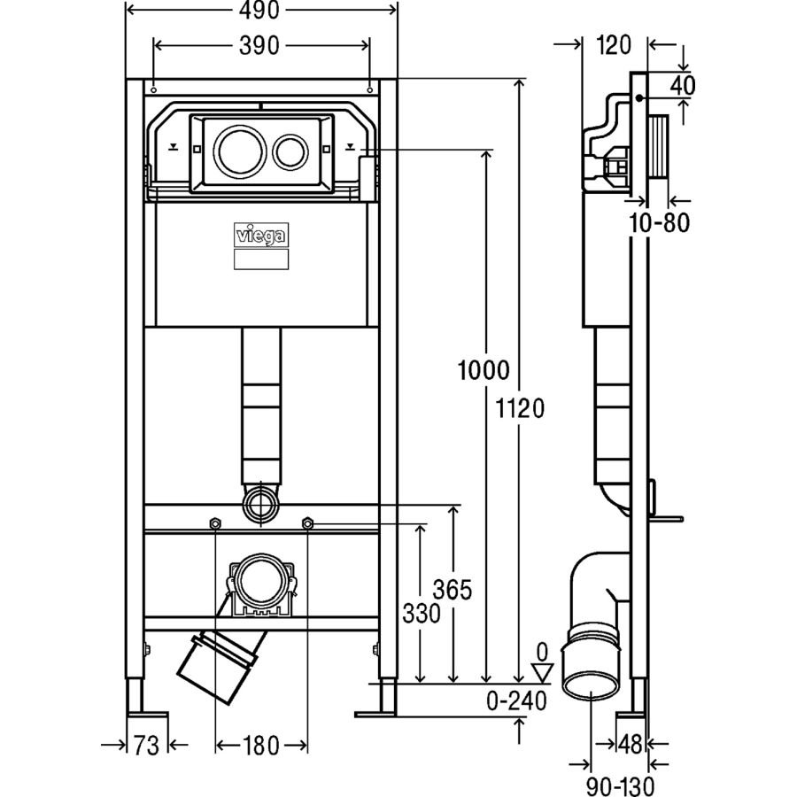 Инсталляция Viega для унитаза Prevista Dry представляет собой встраиваемую конструкцию для подвесного унитаза имеет длительный срок службы – 50 лет, позволяет экономить место в туалетной комнате и санузле, отличается гигиеничностью (отсутствуют труднодоступные для уборки места) и выдерживает нагрузку до 400 кг. Инсталляция устанавливается в стену или фальшкороб, снаружи остается только выход-подключение унитаза и кнопка смыва.