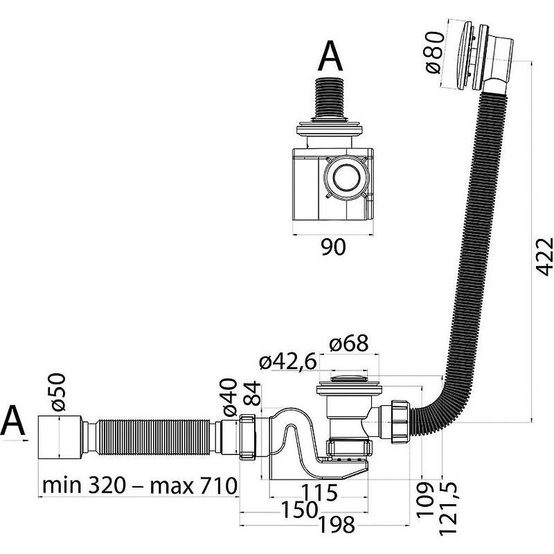 Слив-перелив Cezares для акриловой ванны 422 мм, с гибкой трубой CZR-STP2-01.