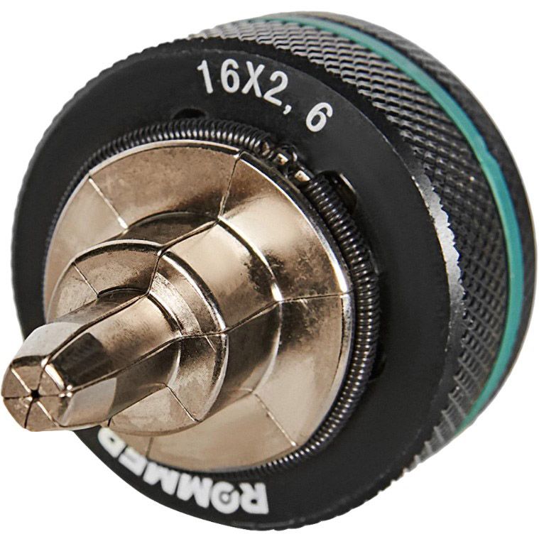 Расширительная насадка ROMMER 16х2,6 - профессиональный инструмент для подготовки металлопластиковых труб к монтажу. Изготовлена из высокопрочной стали с прецизионной обработкой