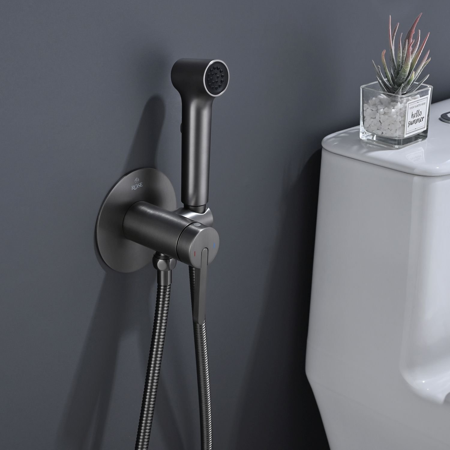 Доставка Гигиенический душ со смесителем Rose (Розе) , оружейная сталь, R235T из Москва в районы и города ЮВАО, ЮЗАО, ЮАО, Новомосковский АО, Одинцово, Подольск, Щербинка, Троицк, Строительный рынок Славянский мир, 41-й км МКАД, бывшая Мельница, Красногорск, Домодедово, Тёплый стан, Коммунарка, Мосрентген, Видное, Мамыри, Краснознаменск