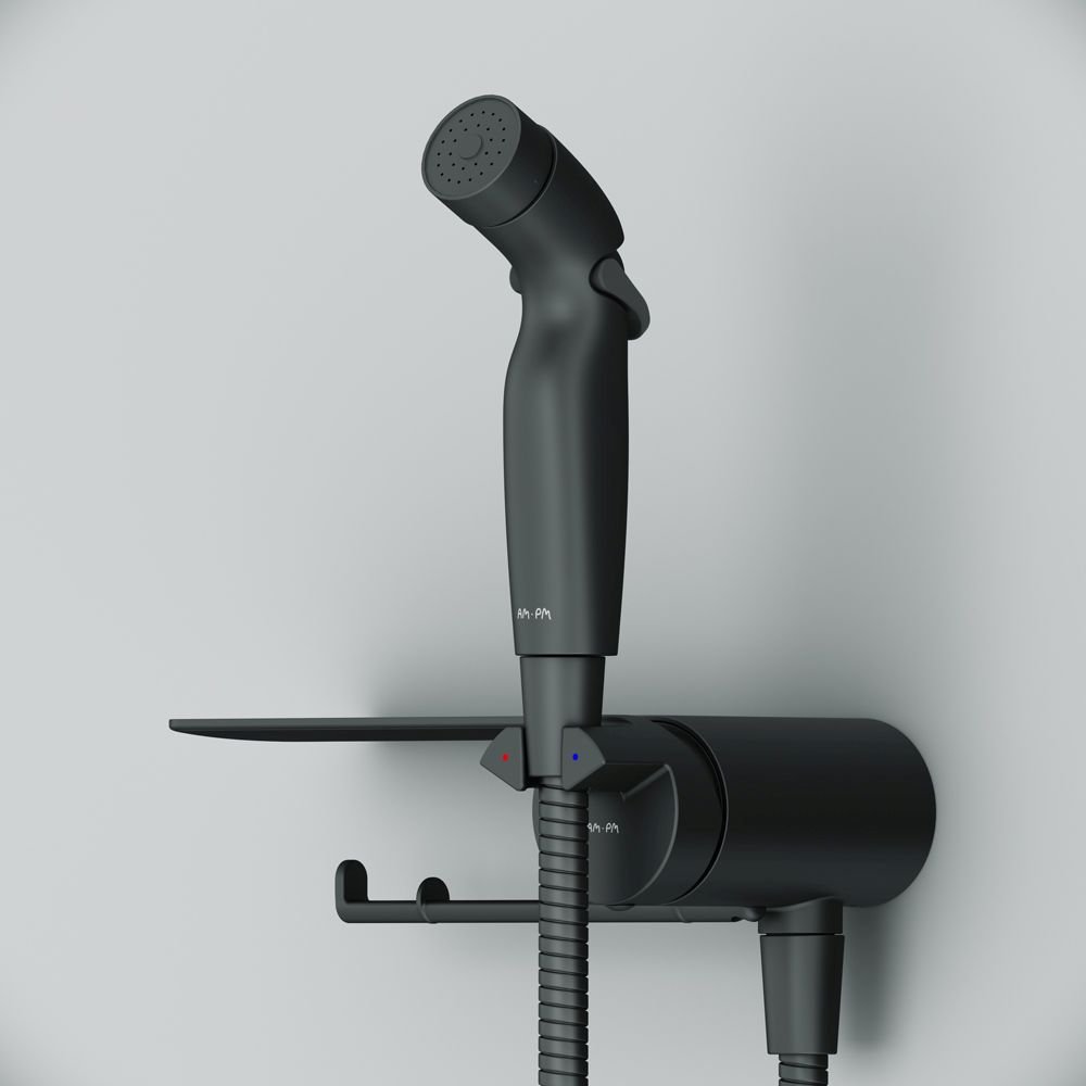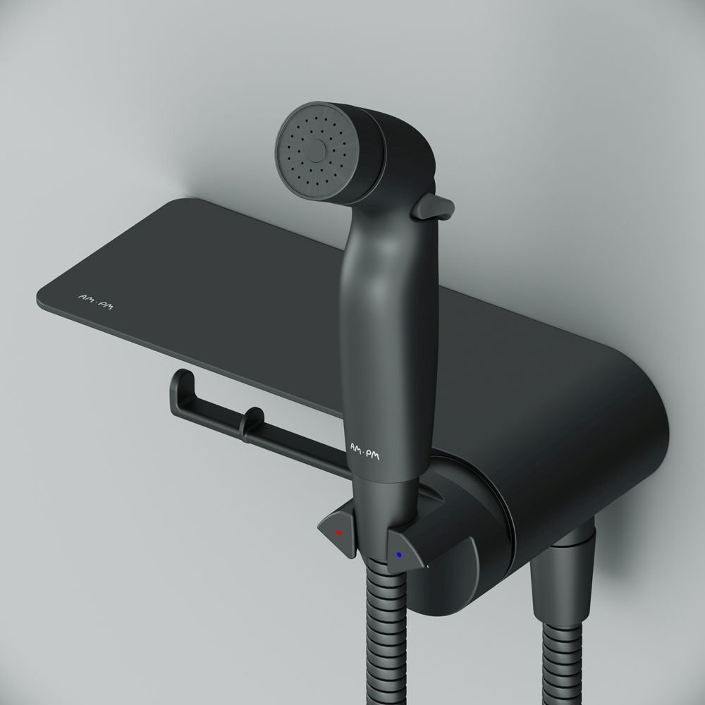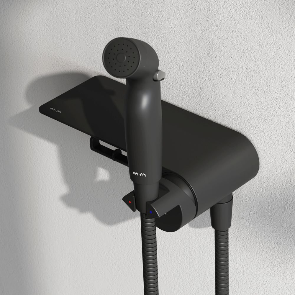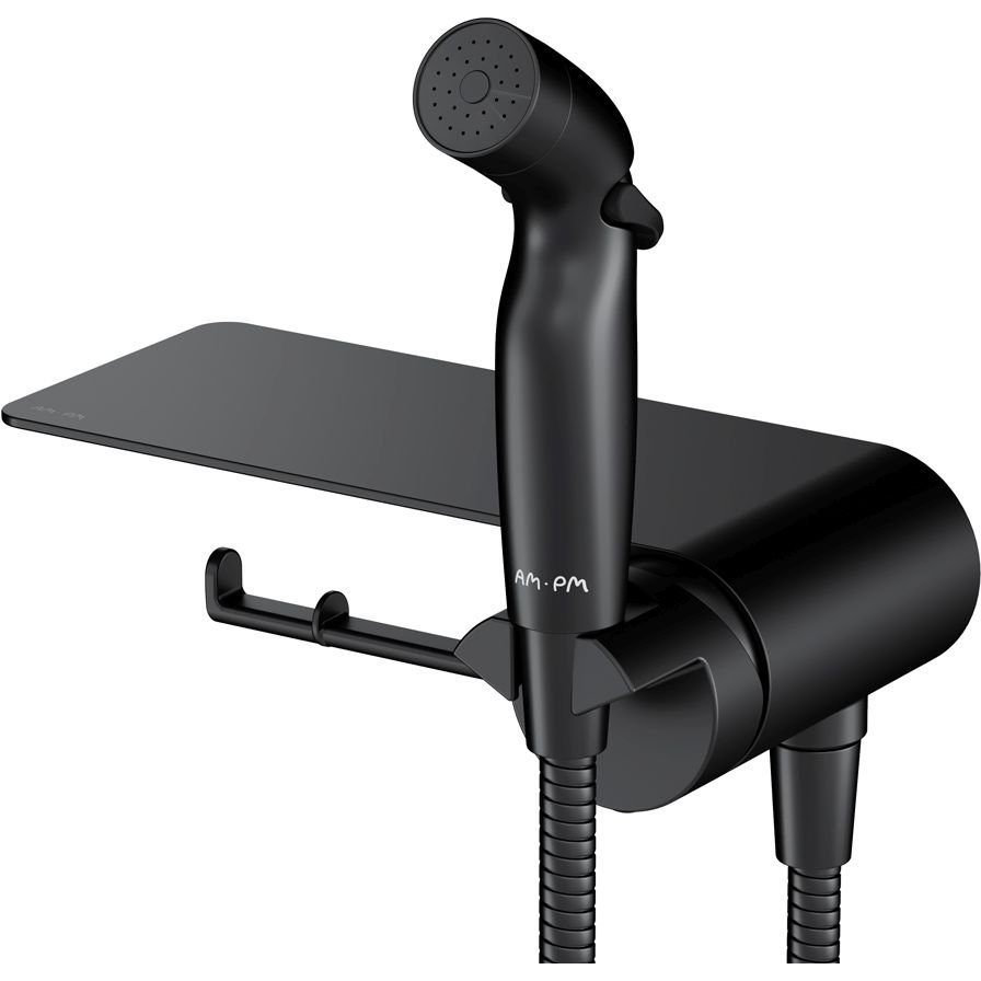 Гигиенический набор со смесителем для душа Am.Pm (Ам.Пм) Func черный, с полкой, F0H8F922
