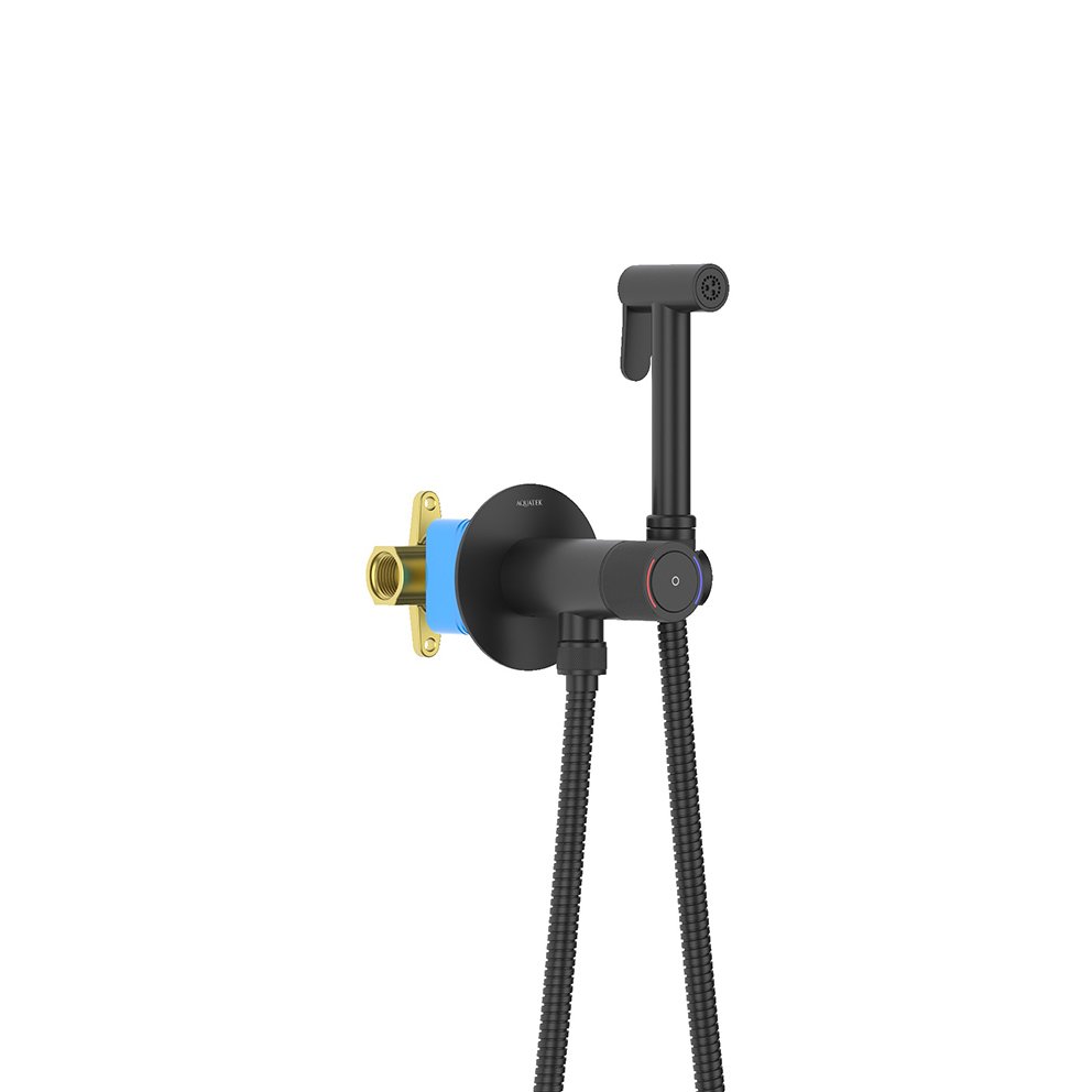 Комплект для гигиенического душа Aquatek (Акватек) Бетта (Betta) Select встроенный (смеситель + гигиеническая лейка + шланг), матовый черный AQ1023MB