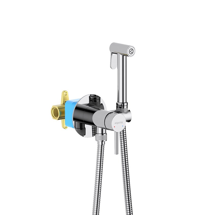 Комплект для гигиенического душа Aquatek (Акватек) Европа встроенный (смеситель + гигиеническая лейка + шланг) хром AQ1021CR