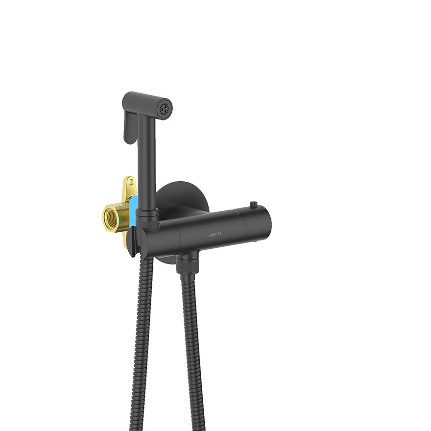 Комплект для гигиенического душа Aquatek (Акватек) Оберон термостатический встроенный (смеситель + гигиеническая лейка + шланг), матовый черный AQ1027MB