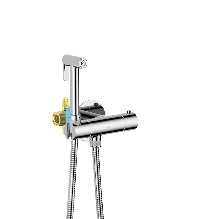 Комплект для гигиенического душа Aquatek (Акватек) Оберон термостатический встроенный (смеситель + гигиеническая лейка + шланг) хром AQ1027CR