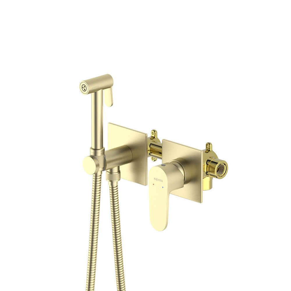 Комплект для гигиенического душа Aquatek (Акватек) Оберон встроенный 2 отв. (смеситель + гигиеническая лейка + шланг), шлифованное золото AQ1220BG