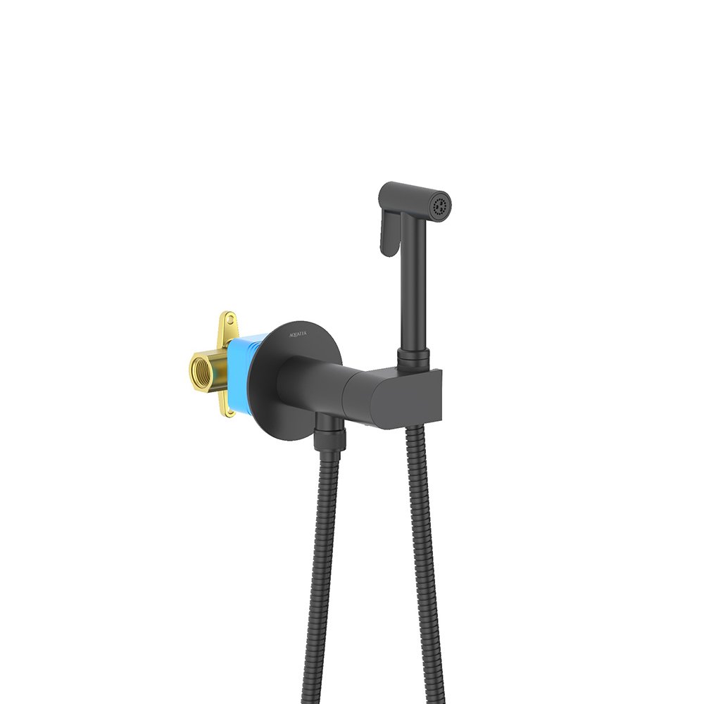 Комплект для гигиенического душа Aquatek (Акватек) Оберон встроенный (смеситель c прогрессивным картриджем + гигиеническая лейка + шланг), матовый черный AQ1024MB