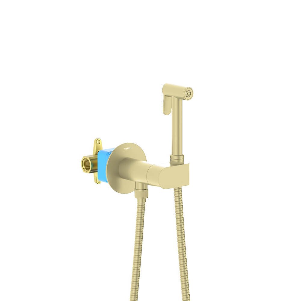 Комплект для гигиенического душа Aquatek (Акватек) Оберон встроенный (смеситель c прогрессивным картриджем + гигиеническая лейка + шланг), шлифованное золото AQ1024BG