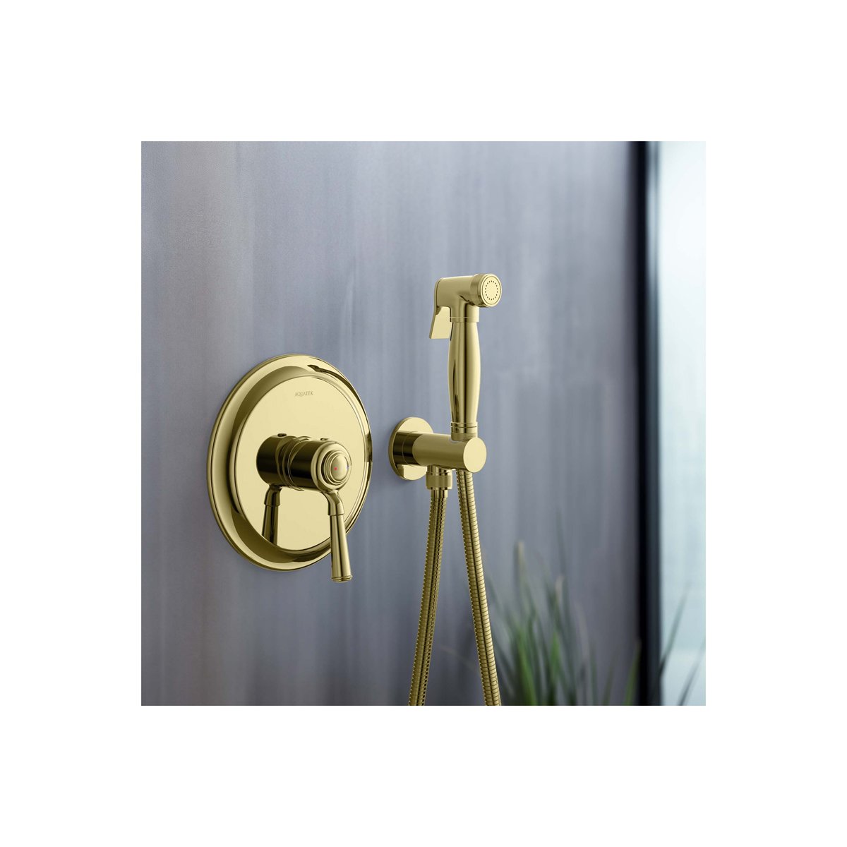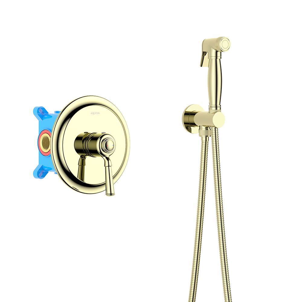 Набор с гигиеническим душем Aquatek (Акватек) Классик (смеситель + гигиеническая лейка + шланг + шланговое подсоединение с держателем), полир. золото AQ1519PG