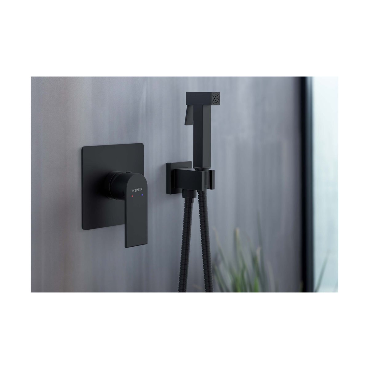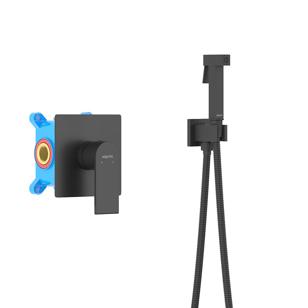 Набор с гигиеническим душем Aquatek (Акватек) Лира (смеситель + гигиеническая лейка + шланг + шланговое подсоединение с держателем), матовый черный AQ1419MB