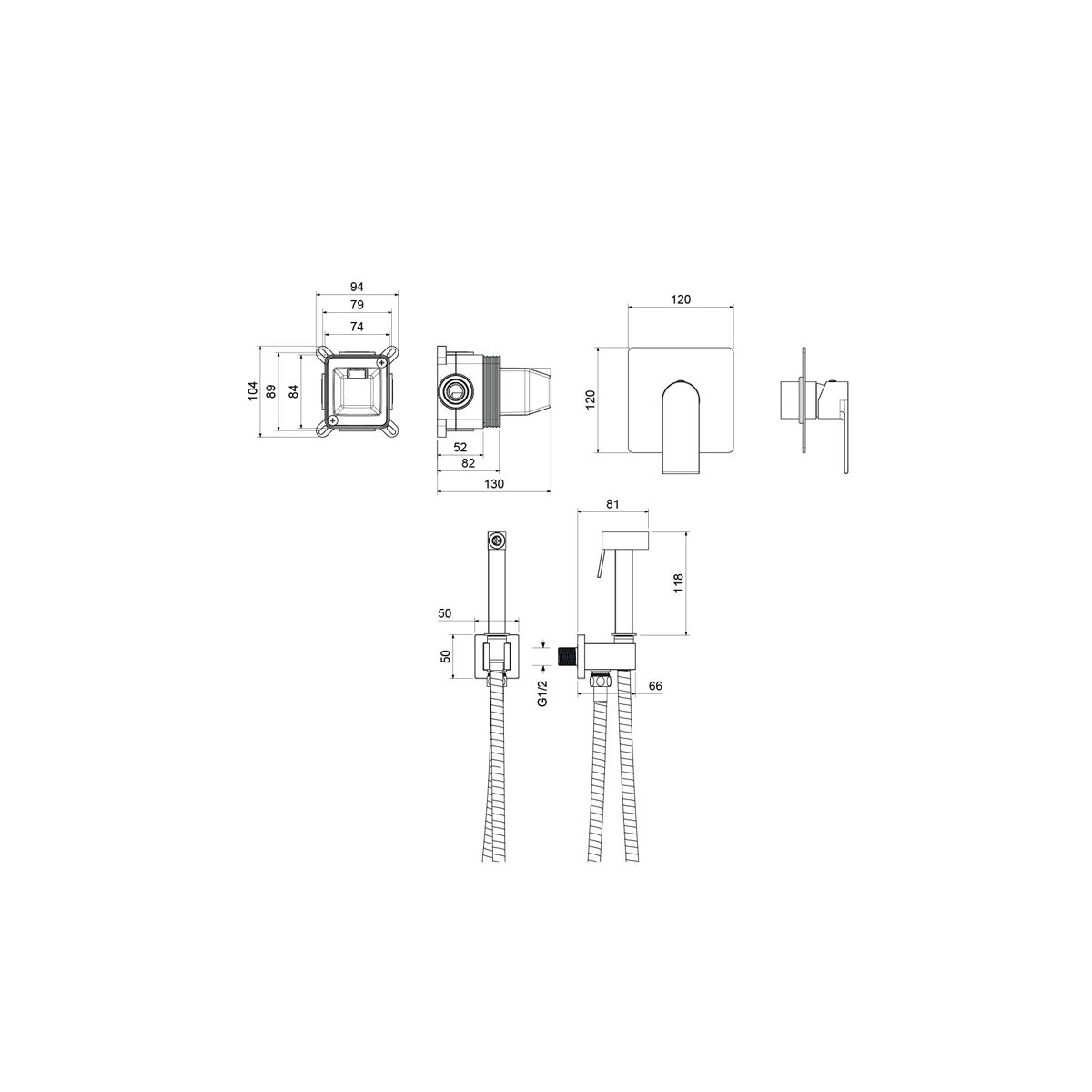 Комплектация:• Смеситель для душа (внешняя и скрытая часть) • Душевой гарнитур: гигиеническая лейка, шланг, шланговое подсоединение с держателем) • Декоративные накладки на стену из нержавеющей стали 3 мм p>