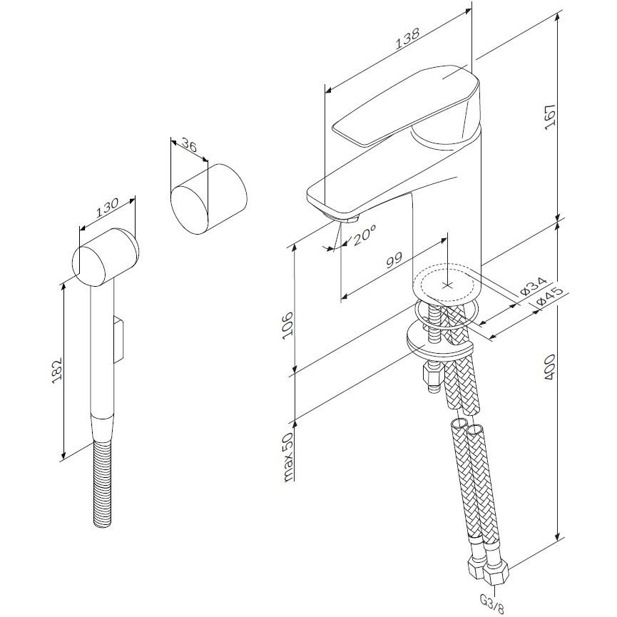 Смеситель Am.Pm (Ам.Пм) для раковины с гигиеническим душем Gem F90A03000 хром