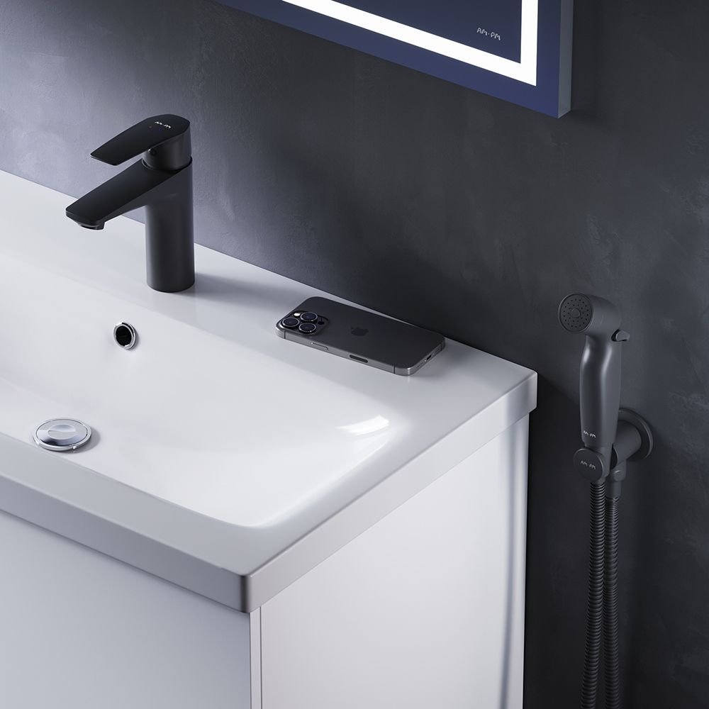 Смеситель Am.Pm (Ам.Пм) для раковины с гигиеническим душем Gem F90A03022 черный