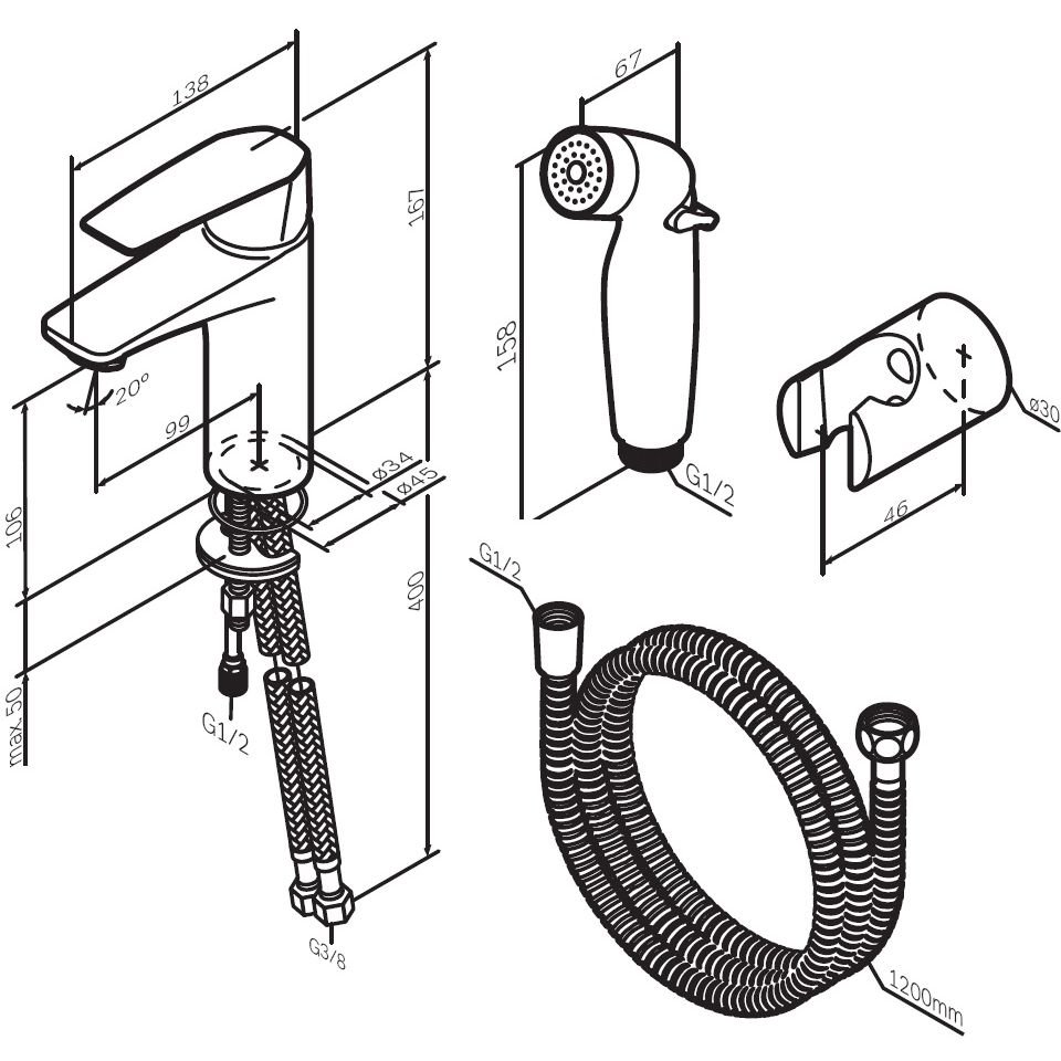 Гигиенический душ со смесителем Shevanik (Шеваник) , белый, S127C