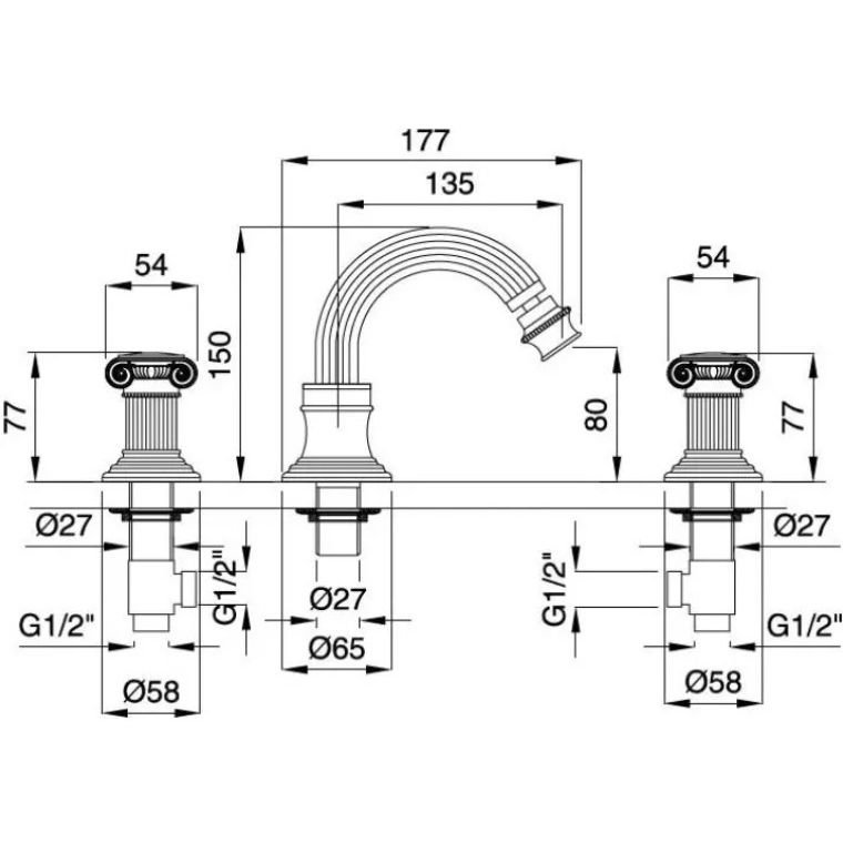 Смеситель для биде Cezares (Цезарис) на три отверстия с донным клапаном, хром OLIMP-BBS2-01-O