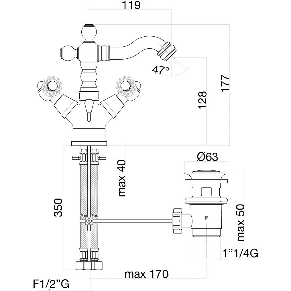 смеситель для биде, донный клапан, подводка